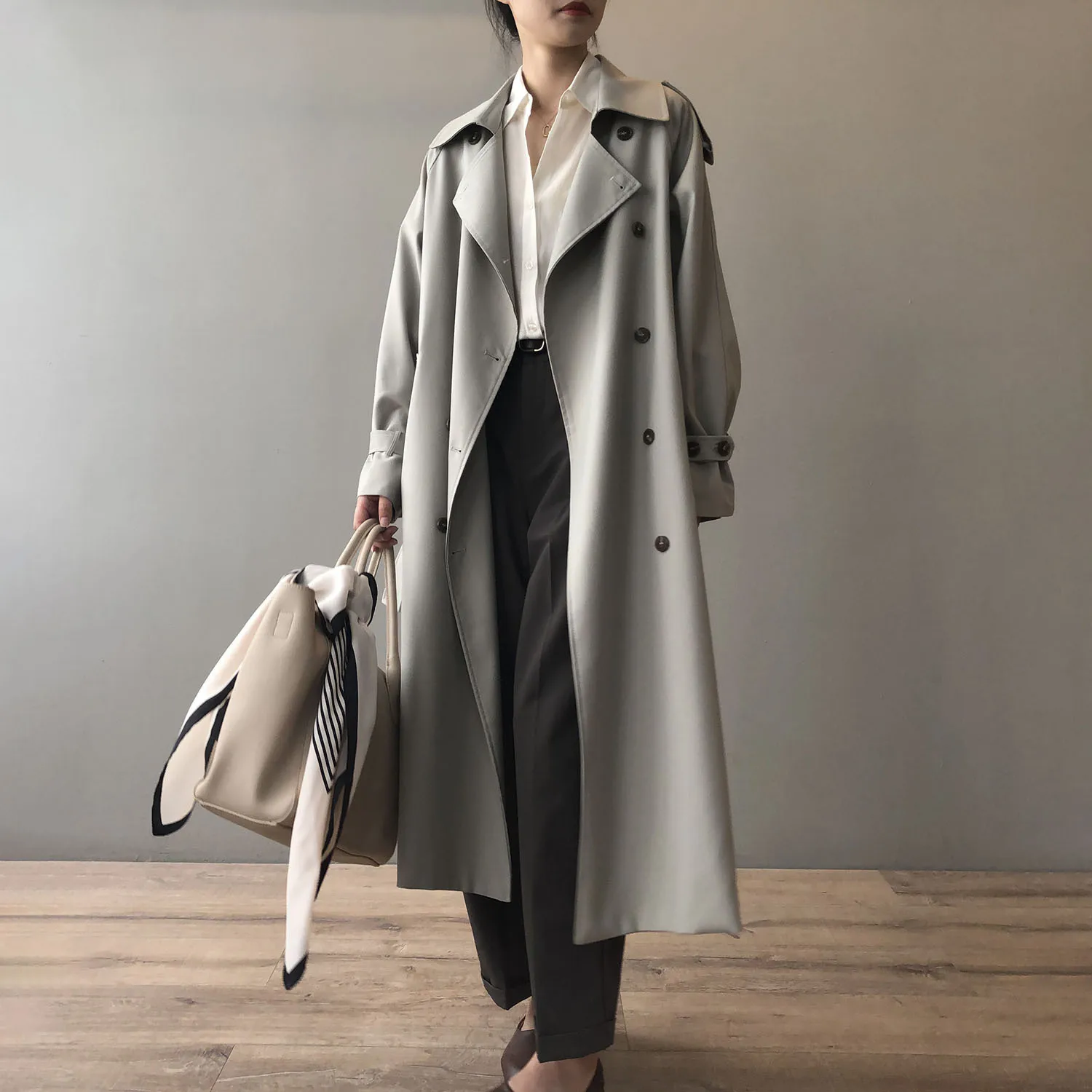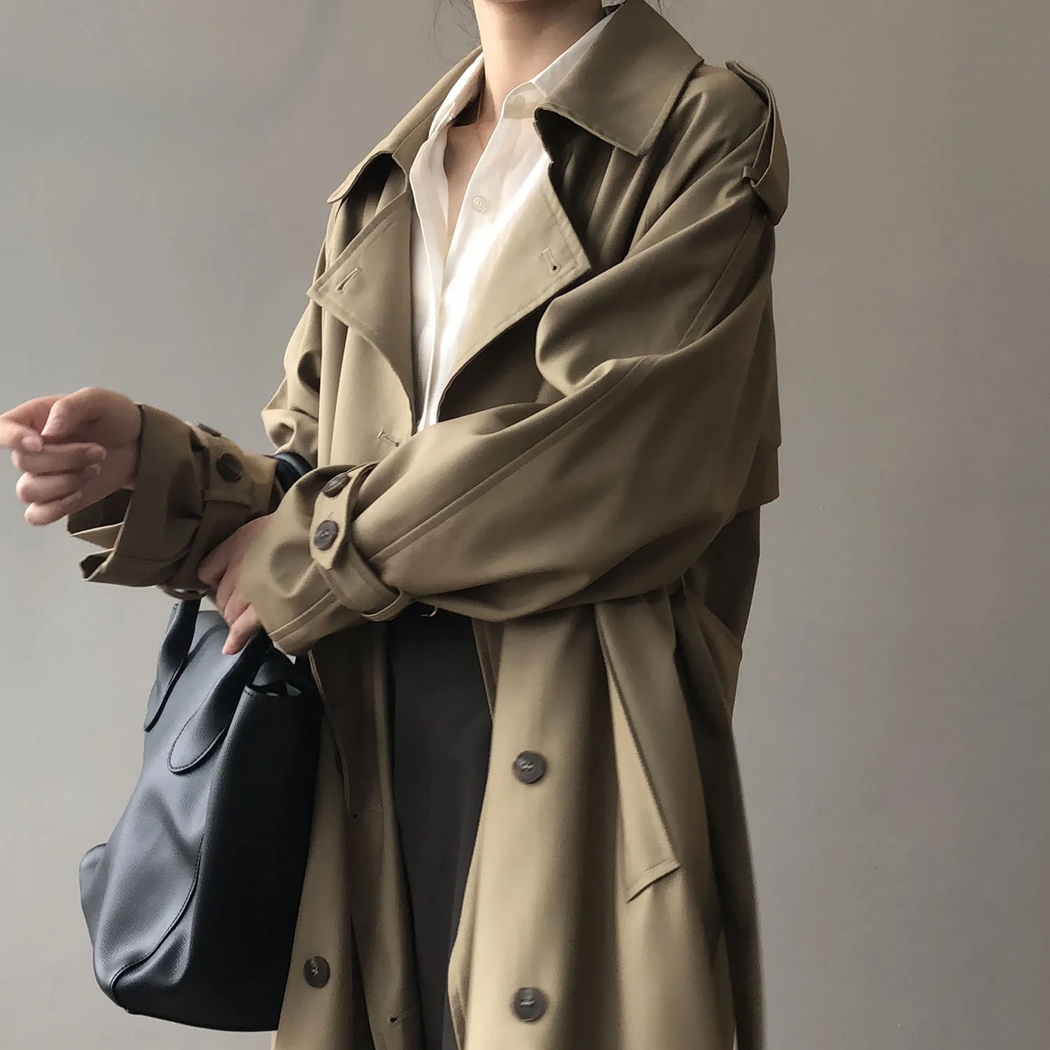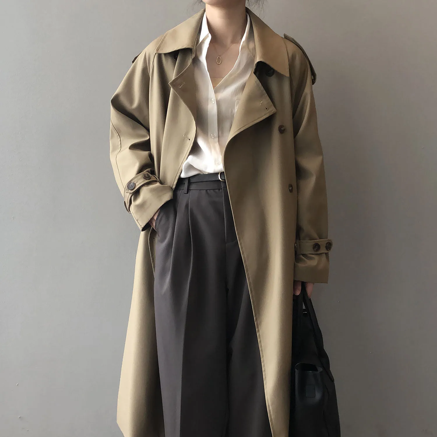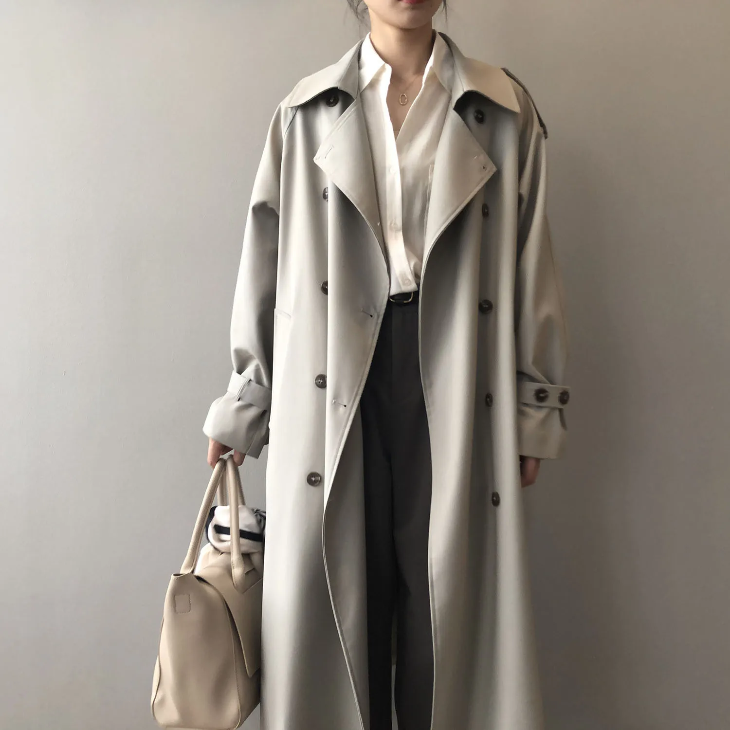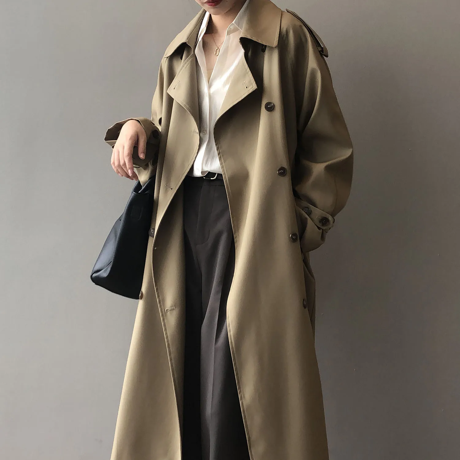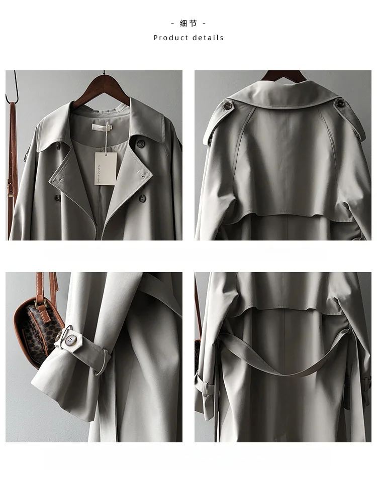 Women's Long Trench Coat, Loose Waist, Double Breasted, Casual Jacket, Spring And Autumn, Temperament Trench,