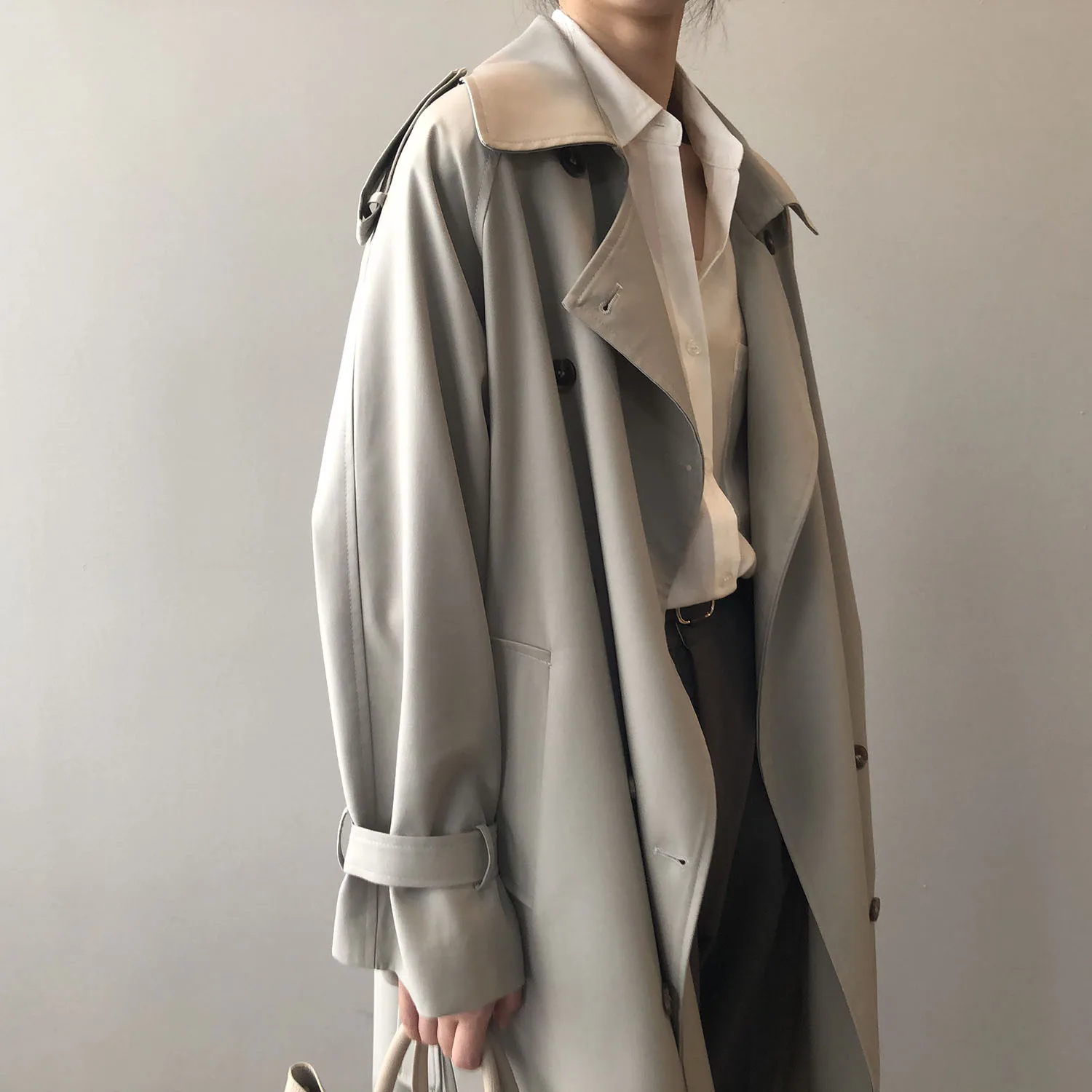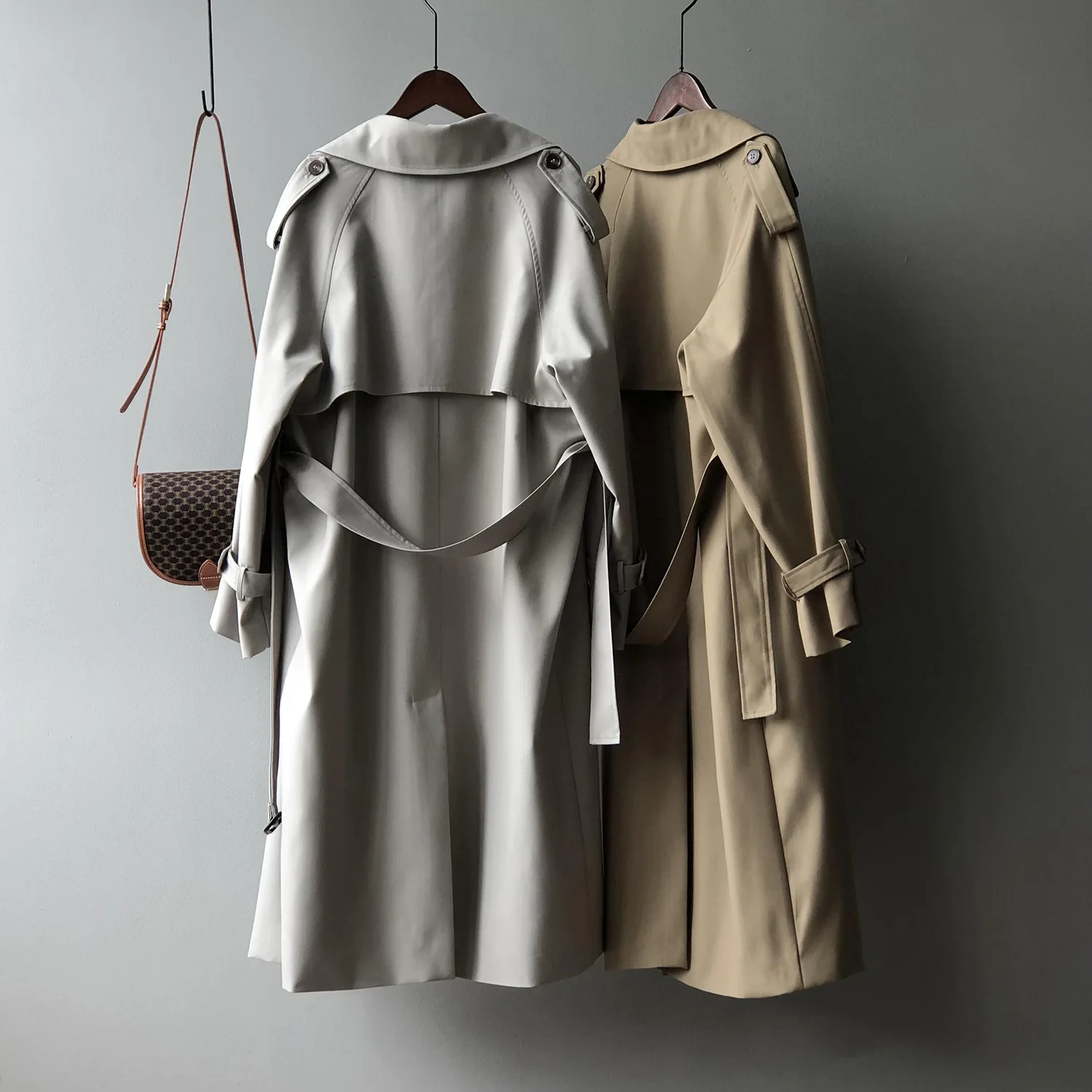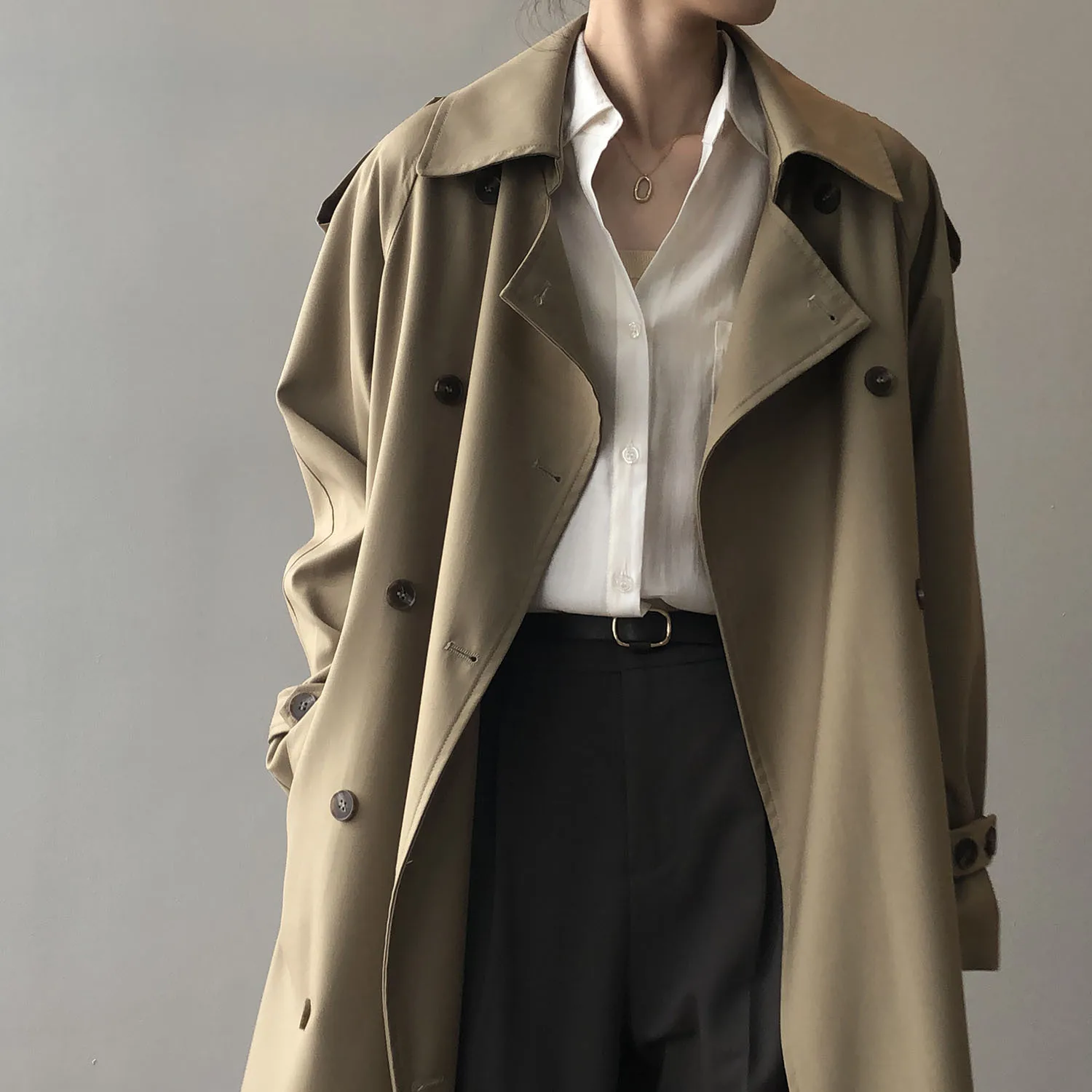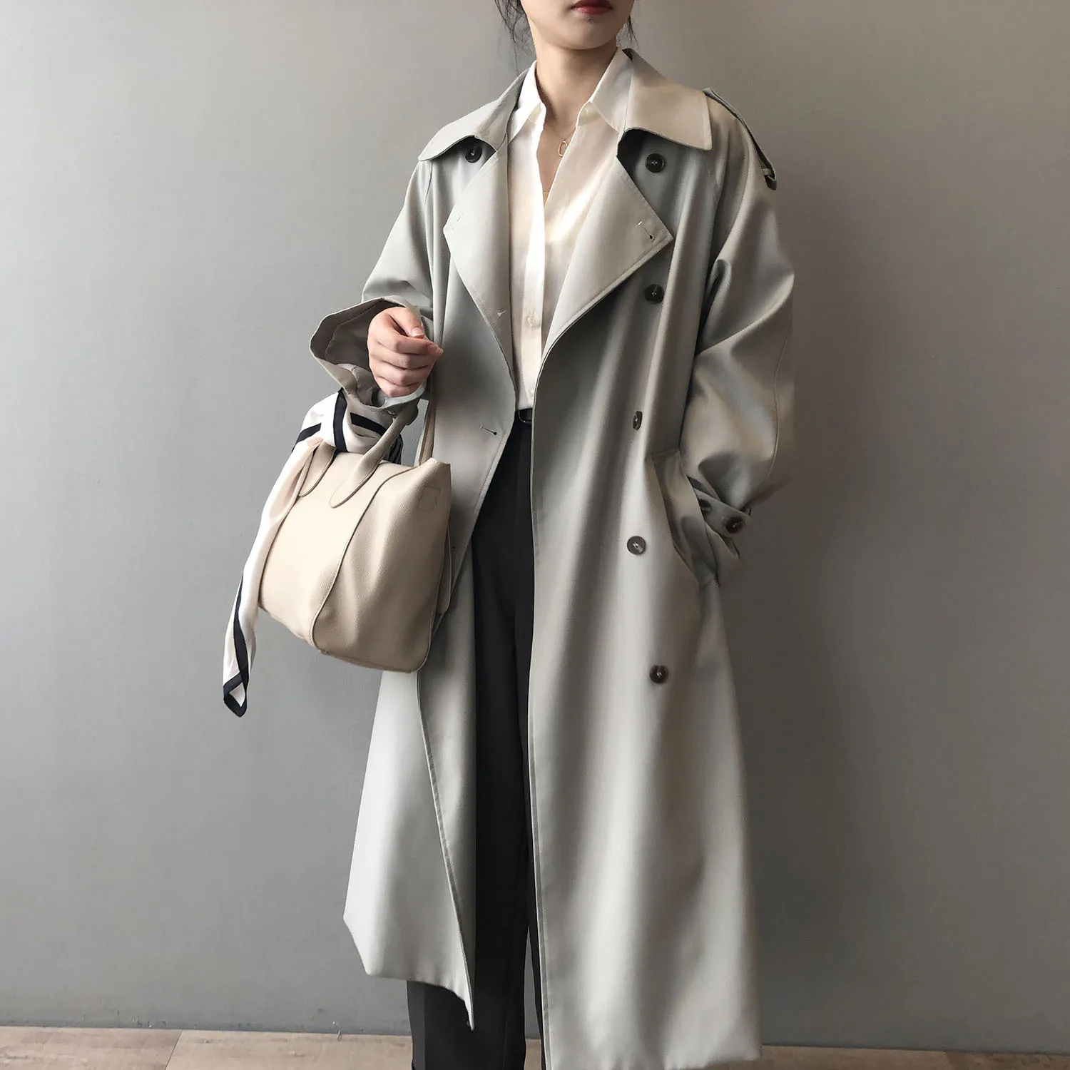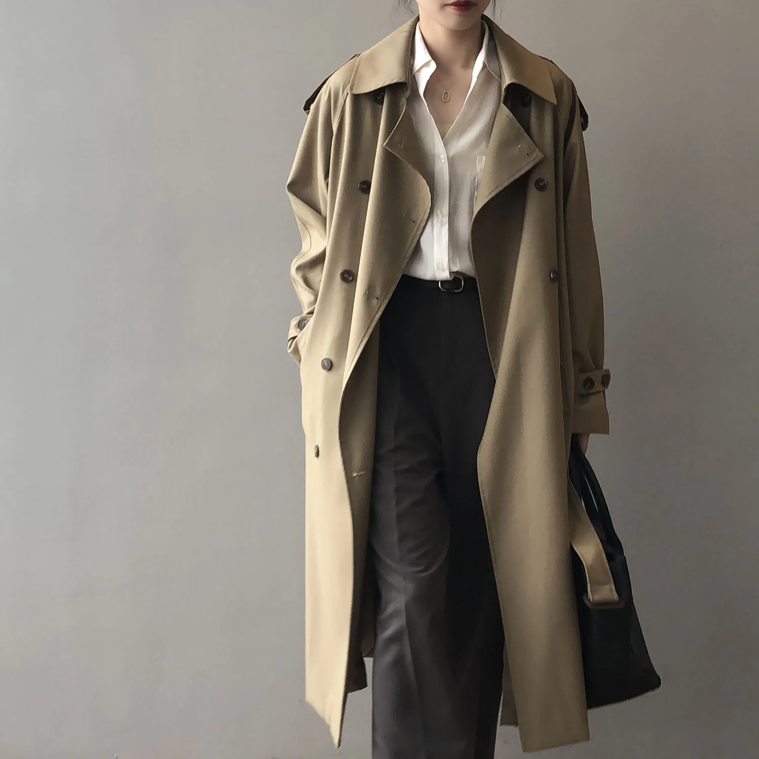 Women's Long Trench Coat, Loose Waist, Double Breasted, Casual Jacket, Spring And Autumn, Temperament Trench,