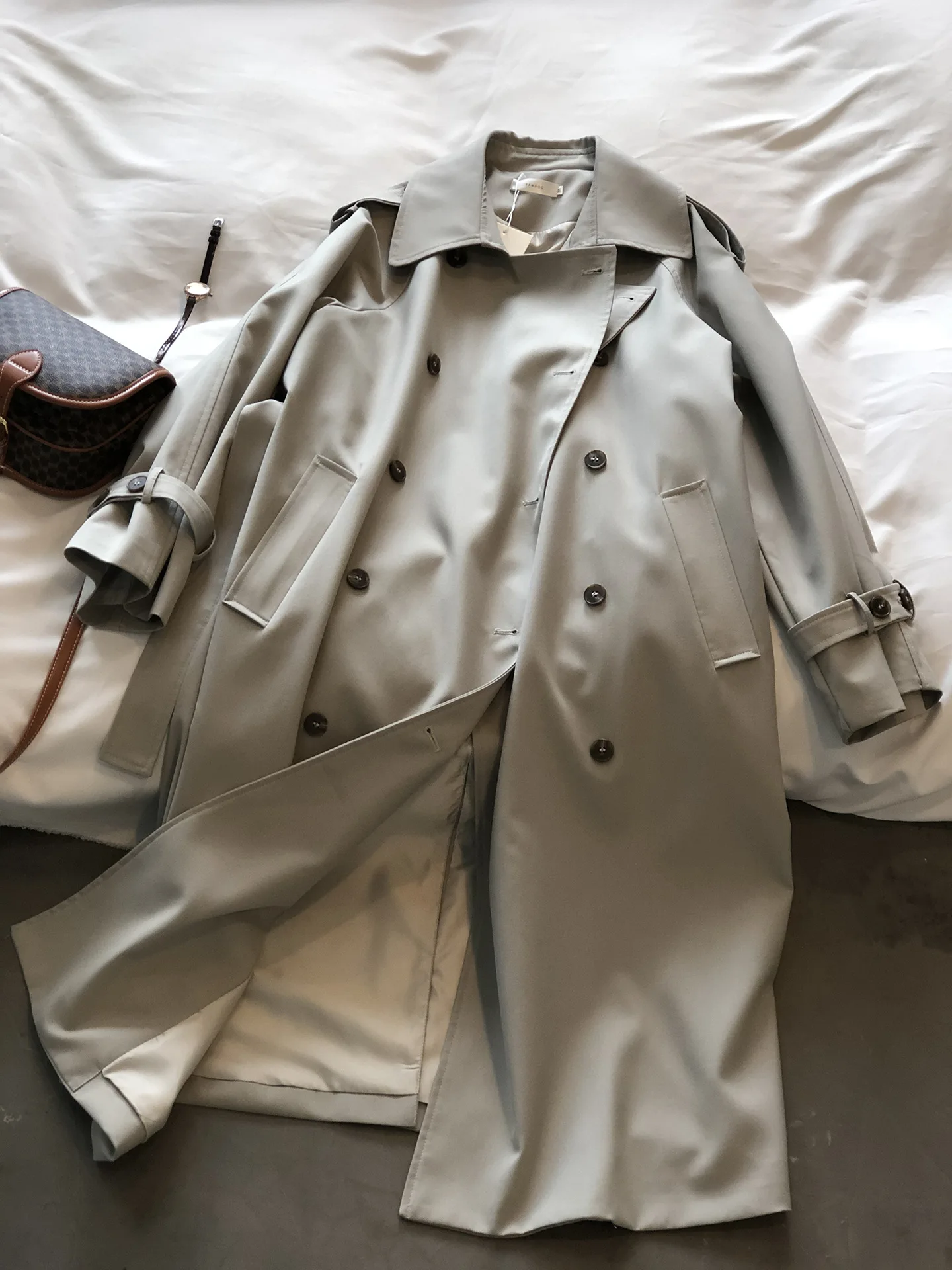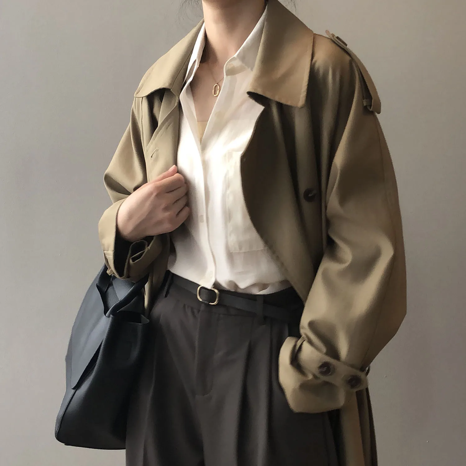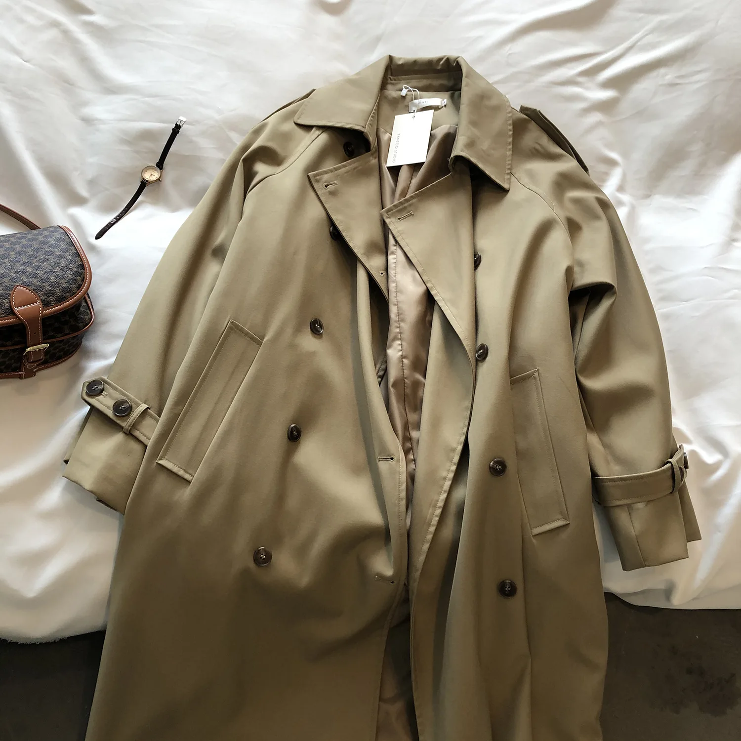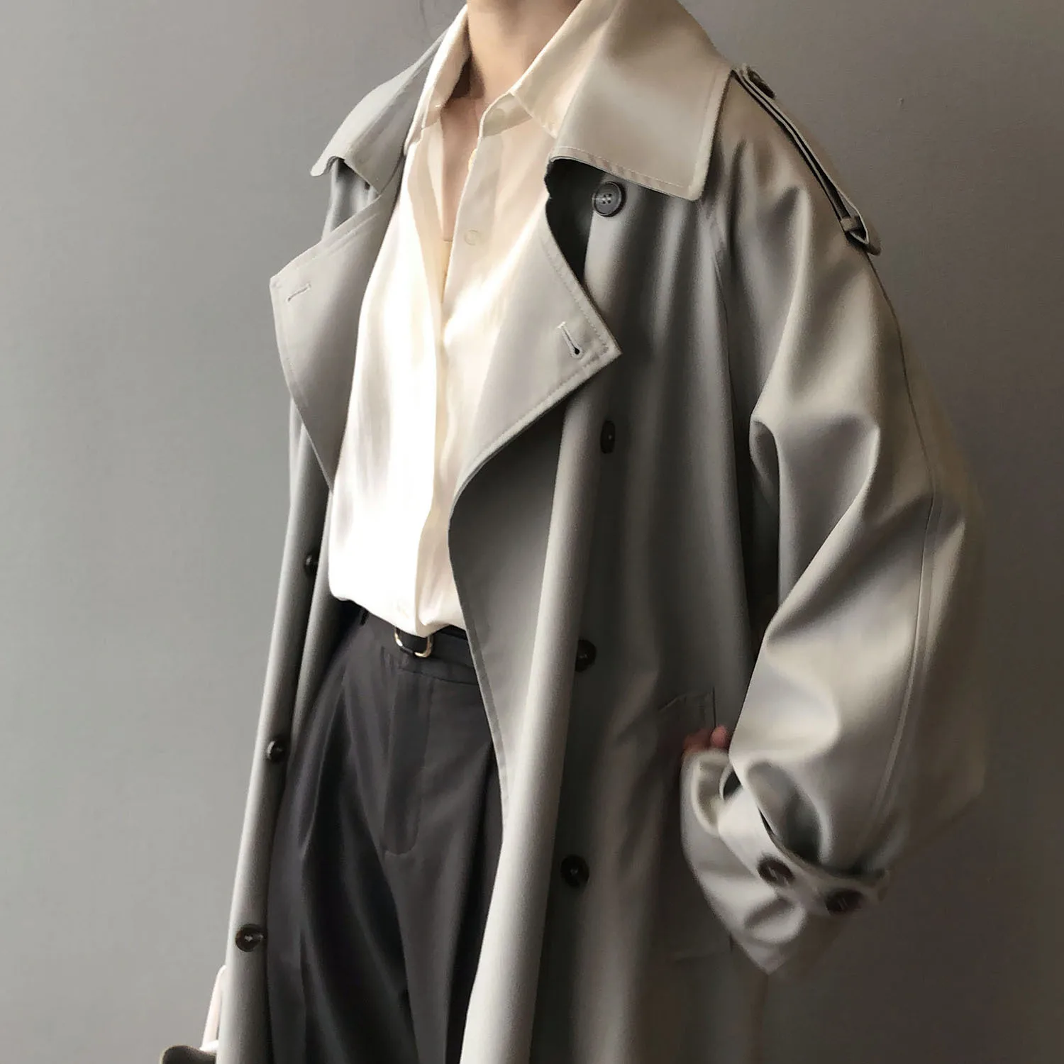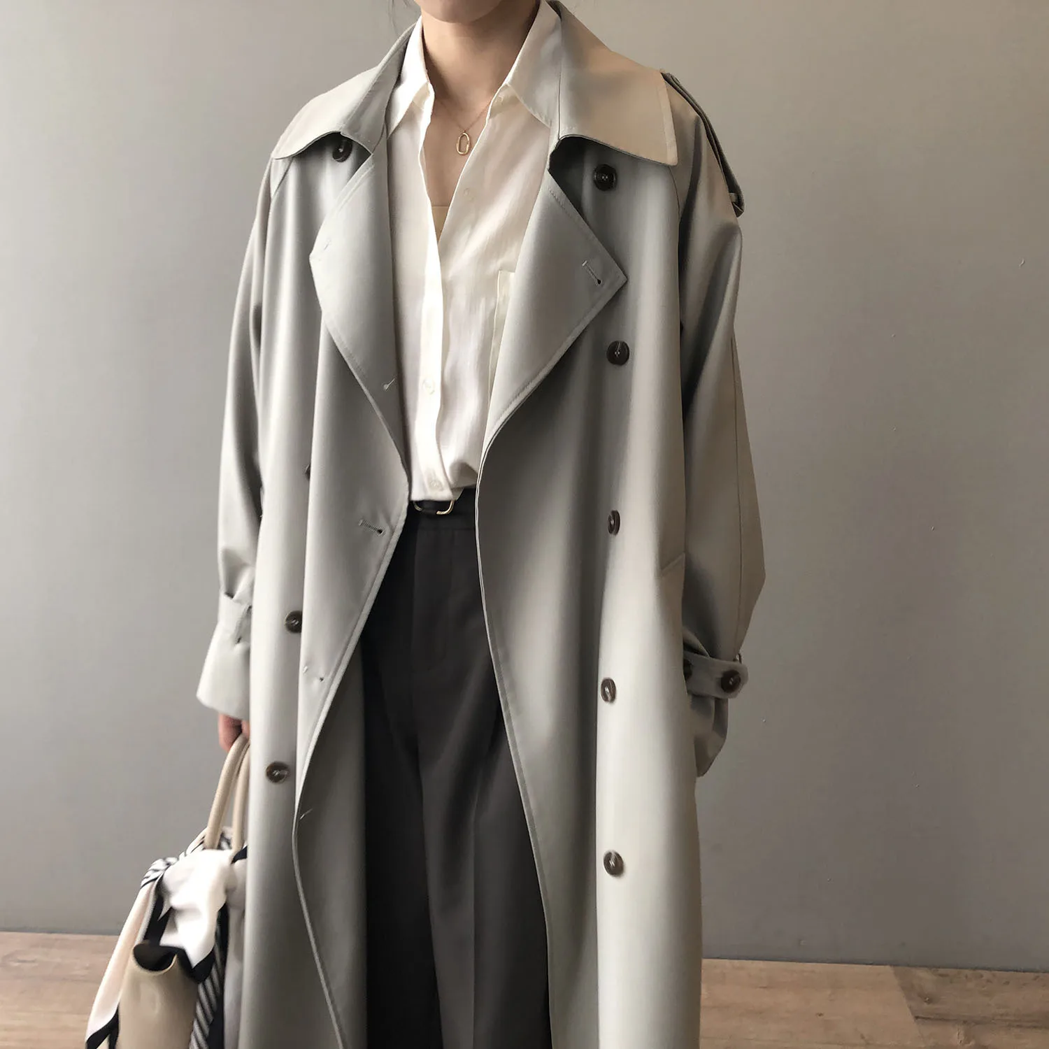 Women's Long Trench Coat, Loose Waist, Double Breasted, Casual Jacket, Spring And Autumn, Temperament Trench,