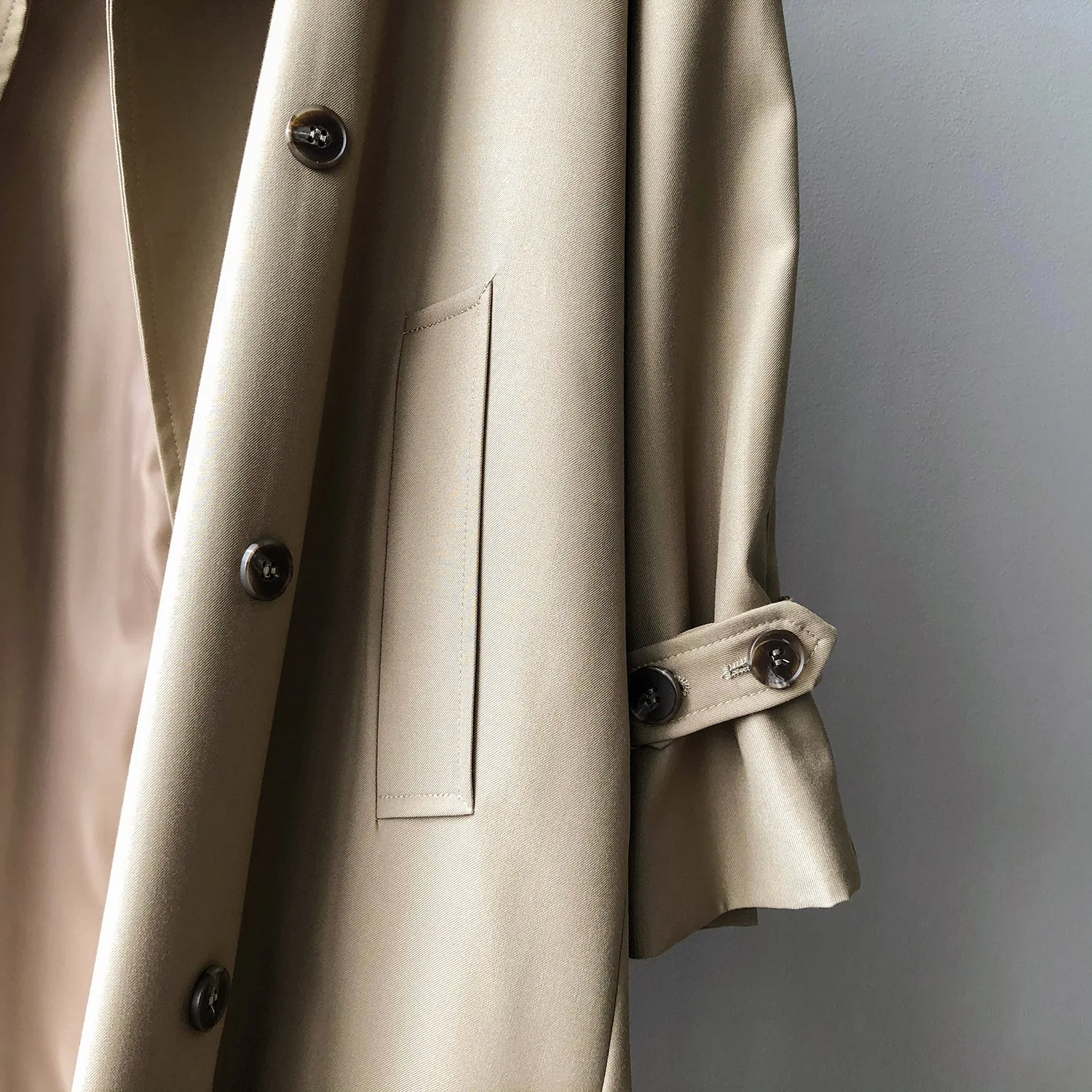 With its long length, this trench coat offers ample coverage and a sophisticated look for any occasion.