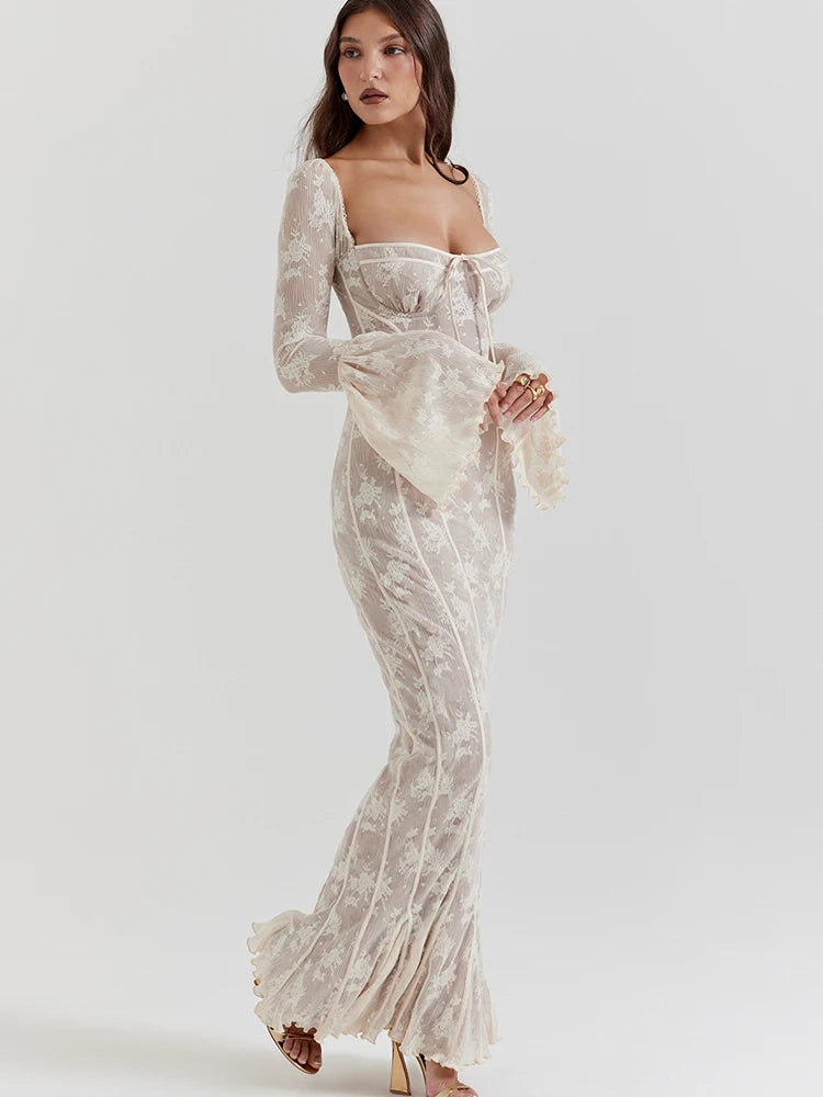 Fantoye Sexy Square Collar Maxi Dress For Women Black Long Sleeve Lace Up Dress Female Autumn Skinny Elegant Party Club Outfits
