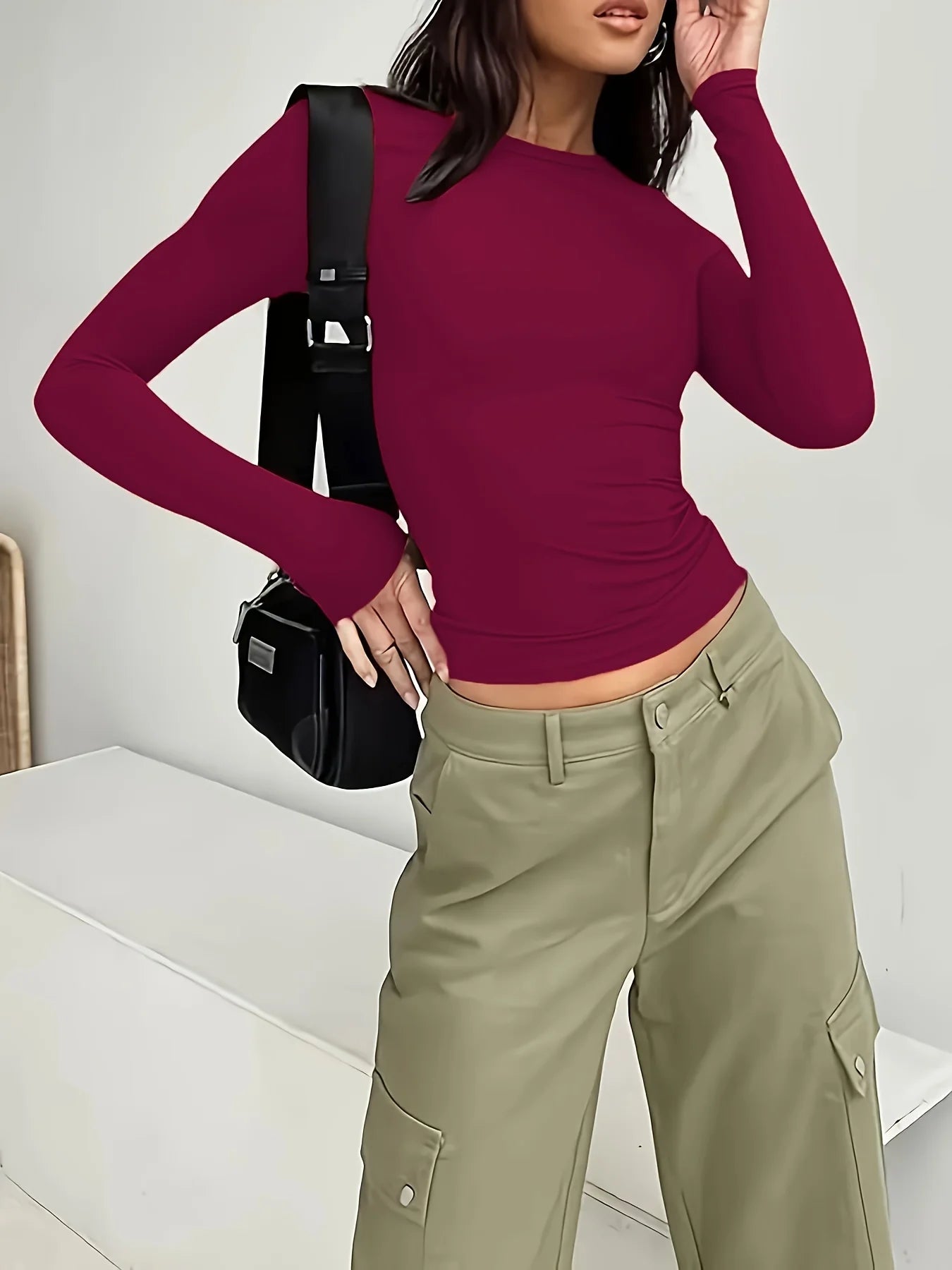 Female commuter casual female simple and fashionable solid color t-shirt with long sleeves