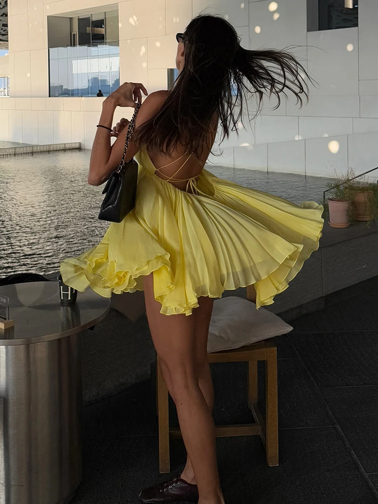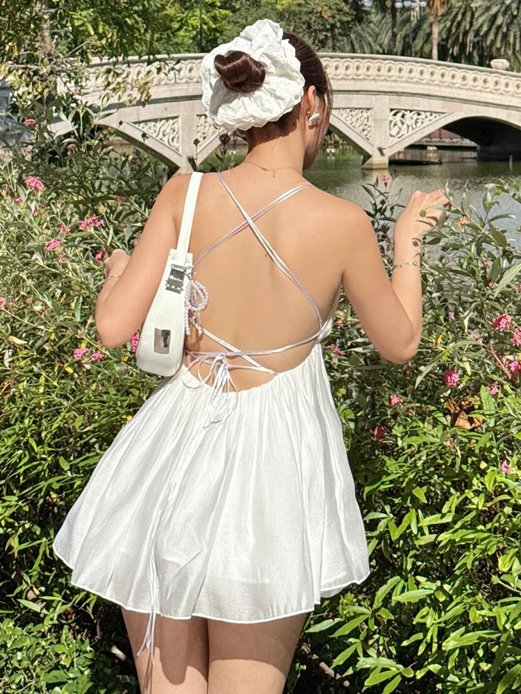 Nibber Sexy Backless Patchwork Dress Women Cross Lace-Up Sleeveless Deep V-Neck Temperament Tierred Midnight Club Mini Bodycon