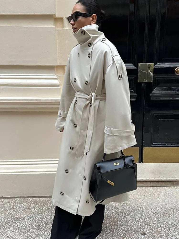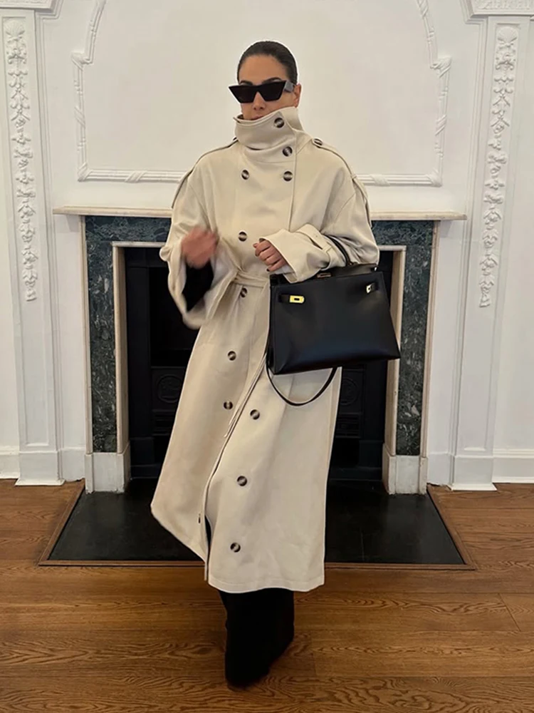 1.Oversized Double - Breasted Trench Coat: